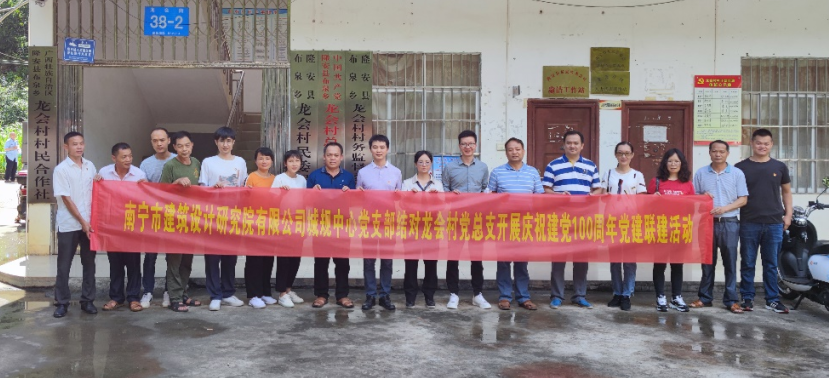 7月9日,南寧市建筑設計研究院有限公司城規中心黨支部聯(lián)合隆安縣退役軍人事務(wù)局黨支部、隆安縣布泉鄉龍會(huì )村黨總支部在布泉鄉龍會(huì )村開(kāi)展慶祝建黨100周年黨建聯(lián)建活動(dòng)。隆安縣布泉鄉鄉長(cháng)方寧、副鄉長(cháng)黃玉勤,城規中心黨支部書(shū)記黃炎佳、總經(jīng)理韋波,隆安縣退役軍人事務(wù)局副局長(cháng)李大安以及布泉鄉龍會(huì )村黨總支部黨員代表共計80余人參加本次活動(dòng)。